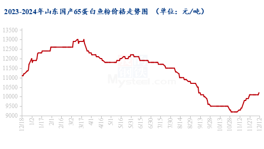 国产行情:本年国产鱼粉本就减产较着,经由此轮行情带动成交后,鱼粉厂家可售库存更为弥留,厂家惜售情谊浓厚,本体成交仍有小幅偏强趋势。不外由于入口行情上行受限,因此国产鱼粉后续涨幅或相对有限。截止12月13日,山东地区65%卵白鱼粉价钱10200-10400元/吨,67%卵白鱼粉价钱11200-11400元/吨,较10月底亦上调1000元/吨傍边,到厂价按本体成交价钱为主。