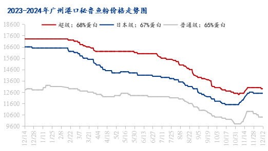 入口行情:截止12月13日,广东商场秘鲁超等鱼粉价钱为12900-13000元/吨,日本级鱼粉价钱为12400-12600元/吨,世俗级65/120看法鱼粉价钱11000-11200元/吨,世俗级65/150看法鱼粉价钱为10400-10500元/吨,较11月初全体上调600-1100元/吨,具体本体成交视捏货商心态为主。卑鄙买货节律走缓后,入口鱼粉本体成交价钱高涨驱动有限,捏货商顺价成谈心态增强。鱼粉商场仍受利好撑捏心态,行情窄幅偏弱趋稳调节。需求季节性淡季情况下,在新货到港前漠视捏货商合理安排自己捏货情况。