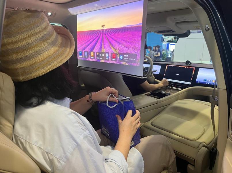 激光彩色车灯,让汽车在户外随处随时升级为私东谈主影院。深圳光峰科技股份有限公司在本届文博会上重心展示了车载显露居品,包括天幕投影、侧窗投影、灵敏名义、大屏投影等期骗。光峰科技公关司理李豪然告诉记者,企业紧持新动力汽车发展机遇,以中枢工夫赋能车企智能化期骗,先后获取数家国表里头部车企、一级供应商的定点合营。